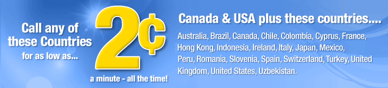 Canada and USA 2¢ per minute